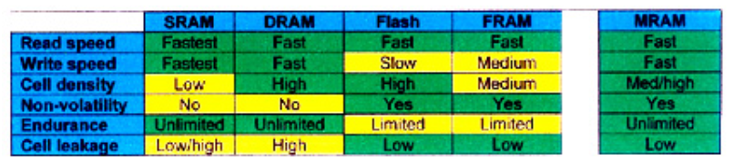 內(nèi)存選項的比較與其他內(nèi)存技術(shù)選項相比,MRAM具有明顯的優(yōu)勢(下表1)。