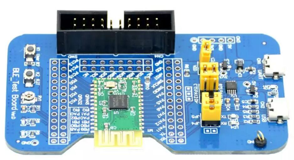 本方案基于MM32 BLE_Test Board進(jìn)行測試驗(yàn)證,藍(lán)牙自拍桿應(yīng)用在硬件上只需要一個功能按鍵即可,藍(lán)牙部分使用藍(lán)牙控制的最小系統(tǒng),我們將這個按鍵接到MCU的PA0引腳,既可以用做喚醒引腳使用,又可以用做自拍的功能引腳。