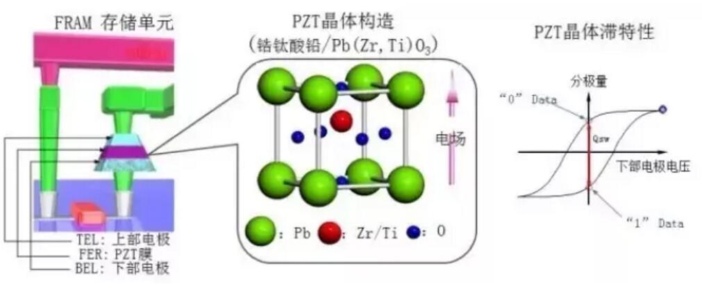 FRAM是運(yùn)用鐵電材料(PZT等)的鐵電性和鐵電效應(yīng)來進(jìn)行非易失性數(shù)據(jù)存儲(chǔ)又可以像RAM一樣操作。
