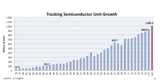 2018年全球半導(dǎo)體出貨量將超過1萬億顆