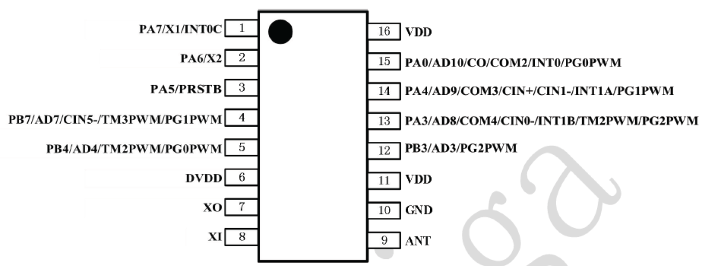 藍牙芯片的BLE射頻發(fā)射功率:最高3dBm。BLE接收靈敏度:-85dBm。包括4KW OTP ROM和256字節(jié)的SRAM。1個16位硬件定時器、兩個8位定時器(可作為PWM生成器)、三個11位硬件PWM生成器、一個硬件比較器、9個IO引腳、6通道12位ADC、ADC參考電壓、一組1T8X8硬件乘法器。時鐘模式內(nèi)部高頻振蕩器,內(nèi)部低頻振蕩器,外部晶體振蕩器。喚醒的IO支持兩種喚醒速度:正常和快速,大部分單周期指令,可設(shè)定堆棧指針和堆棧深度。MS1586的工作溫度:-20℃~+70℃,工作電壓為2.2V~3.6V,封裝采用SOP16(150mil)。