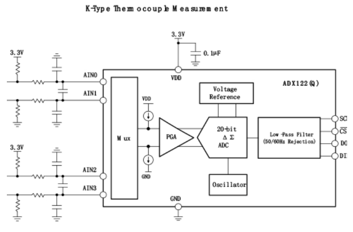 ADX122(Q)內(nèi)部數(shù)字濾波器提供靈活的輸出數(shù)據(jù)速率,從10SPS到3571SPS??构ゎl干擾濾波器可以配置為50Hz或60Hz抑制模式,也可以配置為同時(shí)抑制50Hz和60Hz工頻干擾。在連續(xù)轉(zhuǎn)換模式或單次模式下工作。內(nèi)部濾波器在兩種模式下都是單周期穩(wěn)定的。單次模式轉(zhuǎn)換一次后器件自動(dòng)掉電;因此,空閑期間的功耗顯著降低。ADC轉(zhuǎn)換結(jié)果通過SPI™接口傳輸。同時(shí)ADX122(Q)可以工作在較寬的電源范圍,這些特性使其非常適合功率和空間受限的傳感器測(cè)量應(yīng)用。